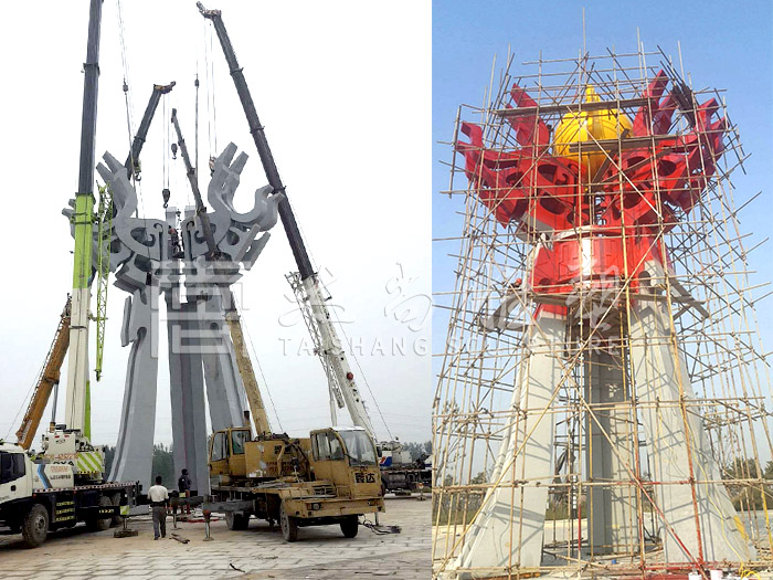 四方隋珠雕塑高18.8米,安裝山東菏澤